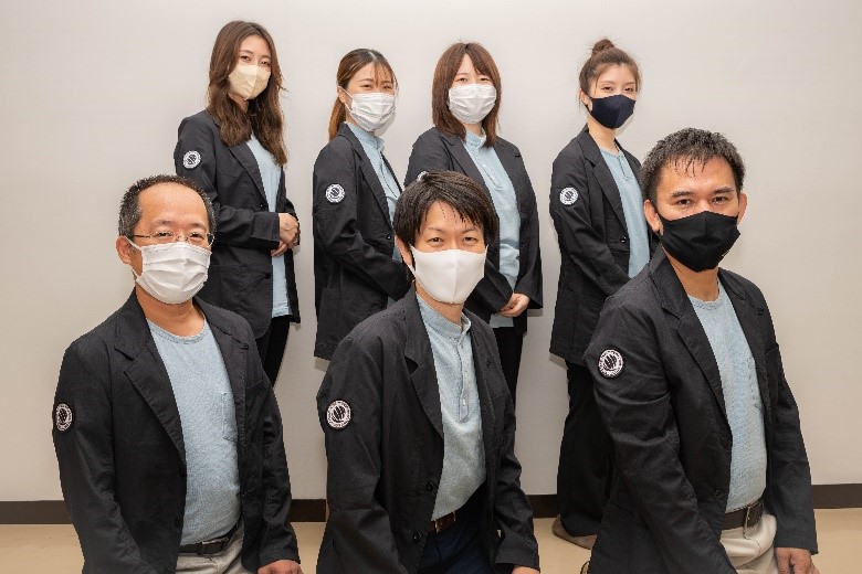 新ユニホームを着用したブランド戦略室のスタッフと、井上社長(前列右)