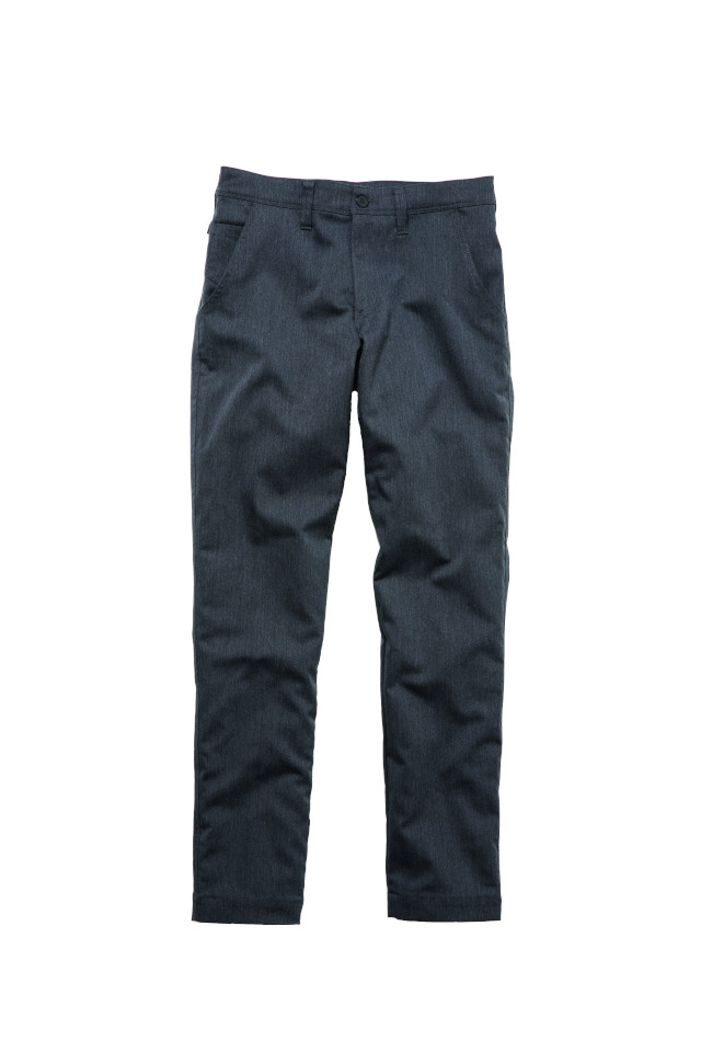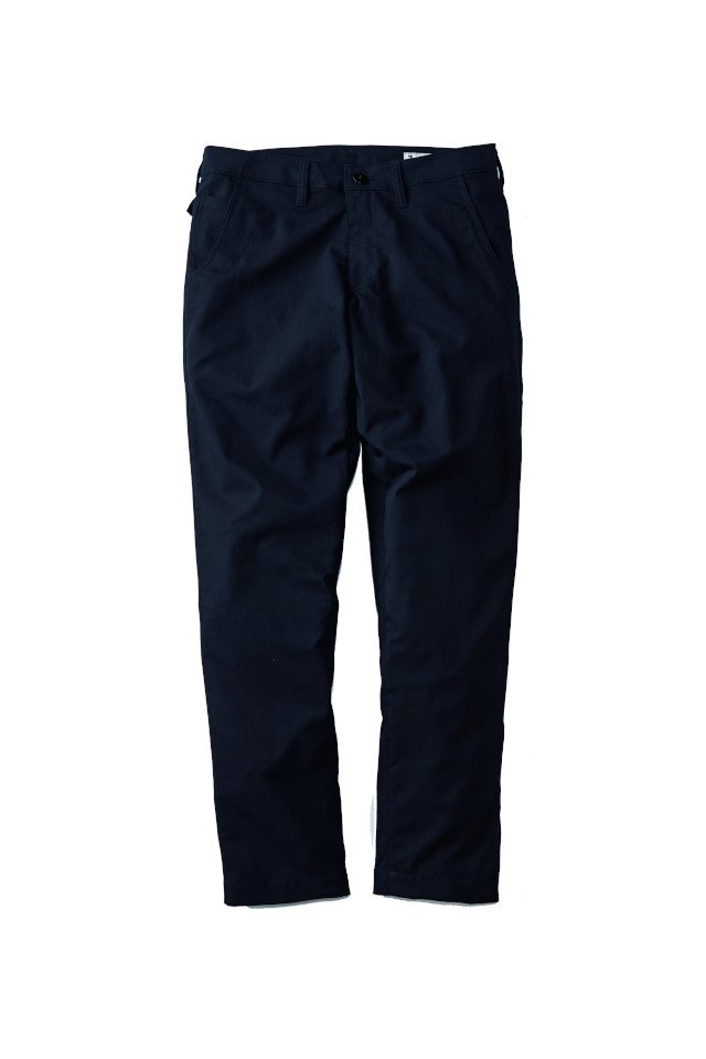 太もも部分やウエスト部分がゆったりとしていて、裾にかけて細くなっているシルエットです。 細身でありながらも太ももまわりにはゆとりがあり、パターン設計上、動きに対して生地が引っ張らず履きやすいため、自分にあったサイズを選べば着用感抜群のストレスフリーなパンツです。
