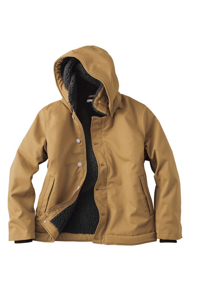 武骨でありながらシンプルなデザインと機能性を持ち合わせたアウター。 取り外し可能なビックフード、保温力の高い裏ボア、寒気をシャットアウトする袖口リブニット、 使い勝手の良いフロントWファスナーと多機能なアウターです。