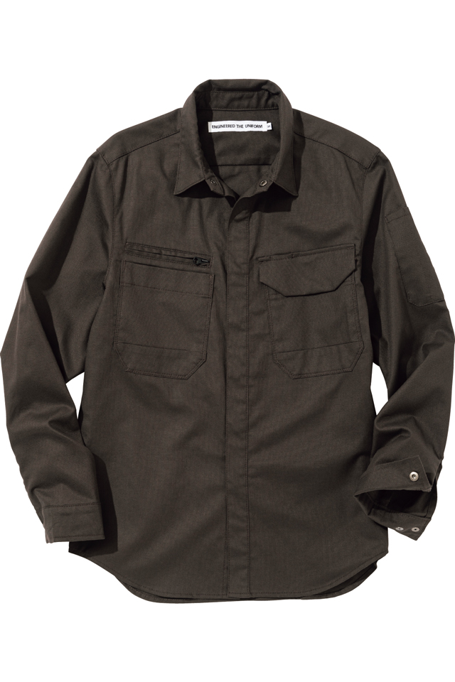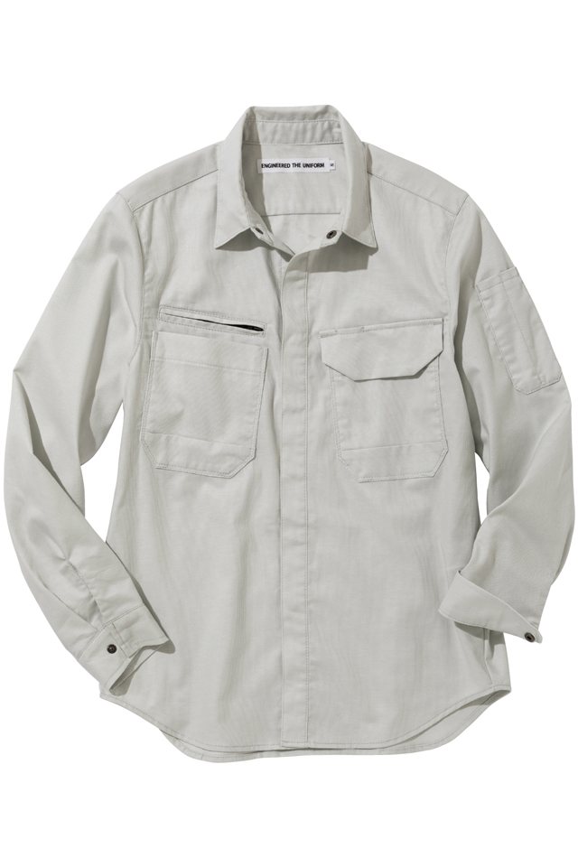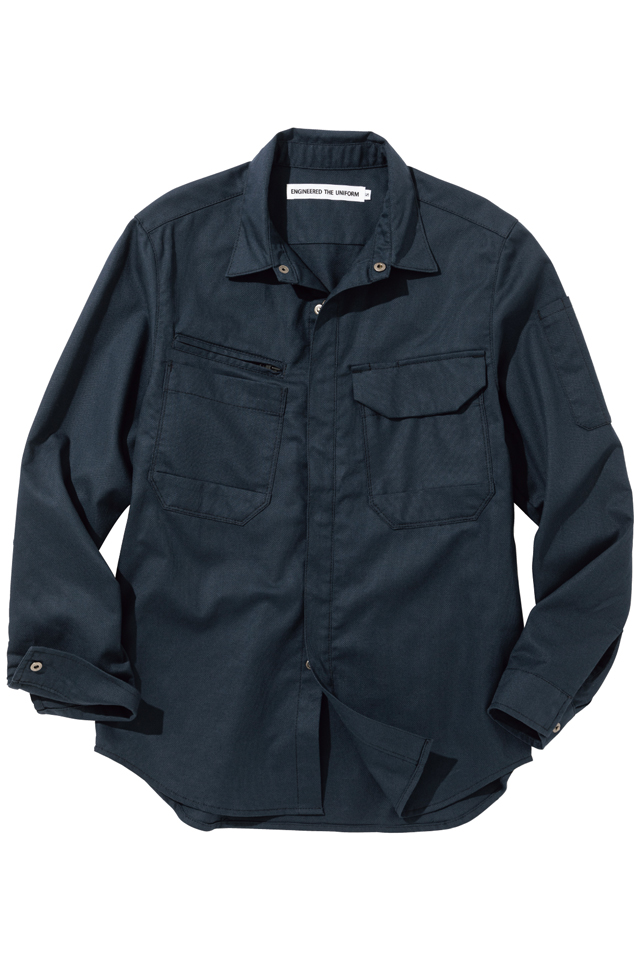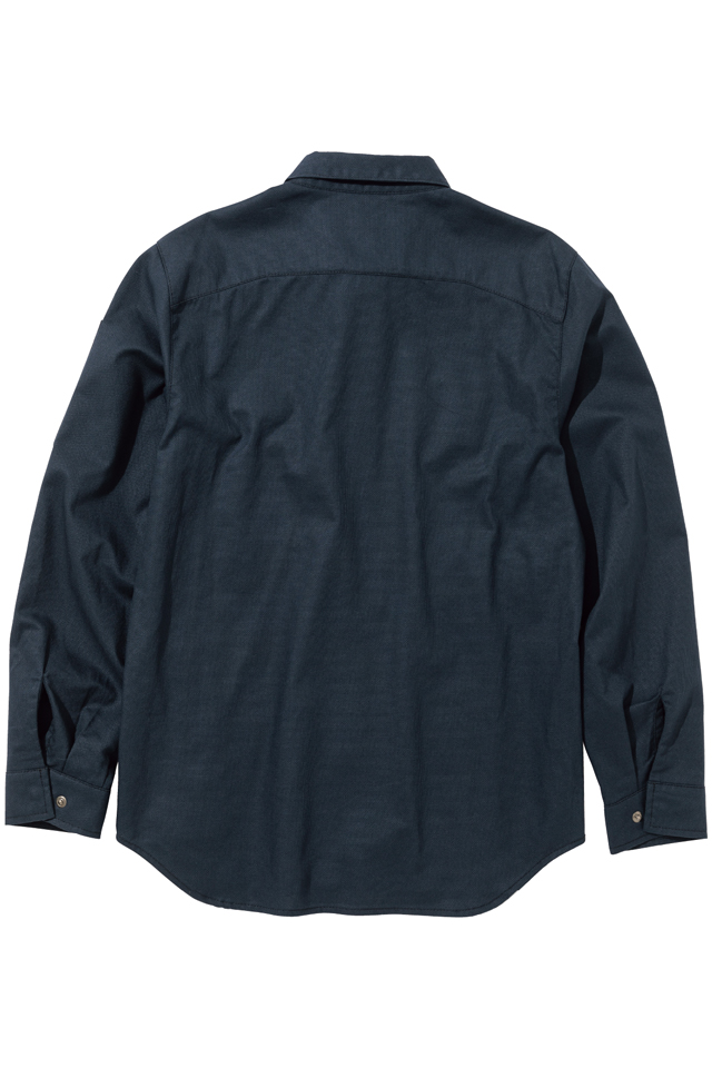 ストレッチ性のある綿100%の生地を使ったdimoスタイルのソリッドシャツ。 主に火を扱う業種に適していますが、普段使いやアウトドアにも最適です。 ボタンも表に出ない隠しドットボタン仕様、 表側に凹凸のないシンプルデザインの商品です。